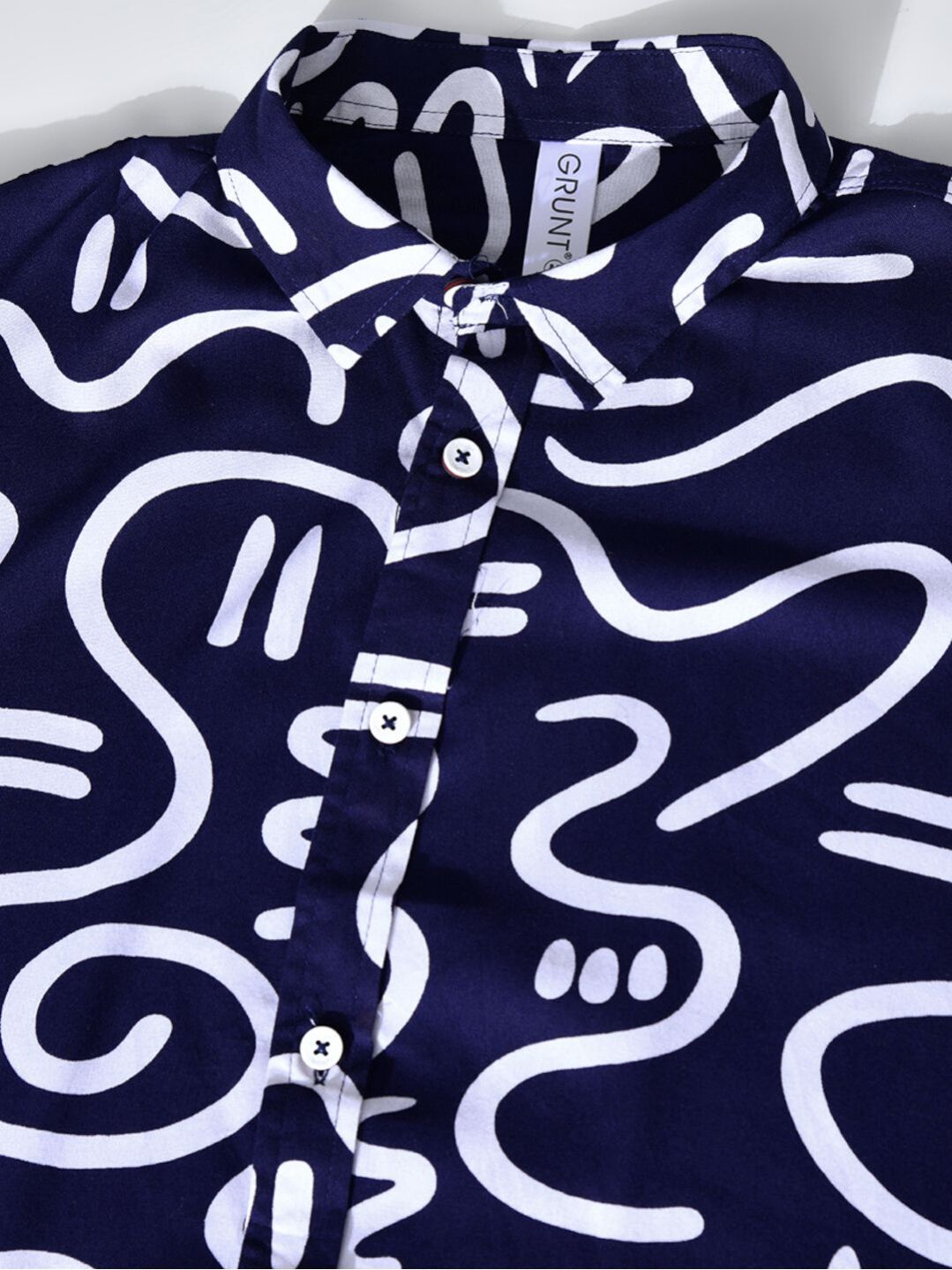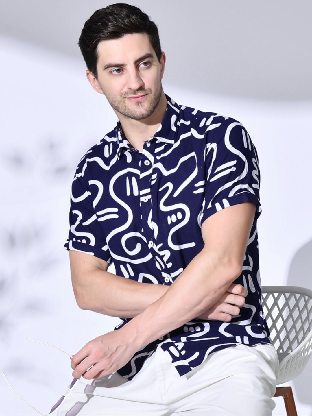 0 Review Of Product Blue & White Abstract Printed Roll-Up Sleeves Shirt