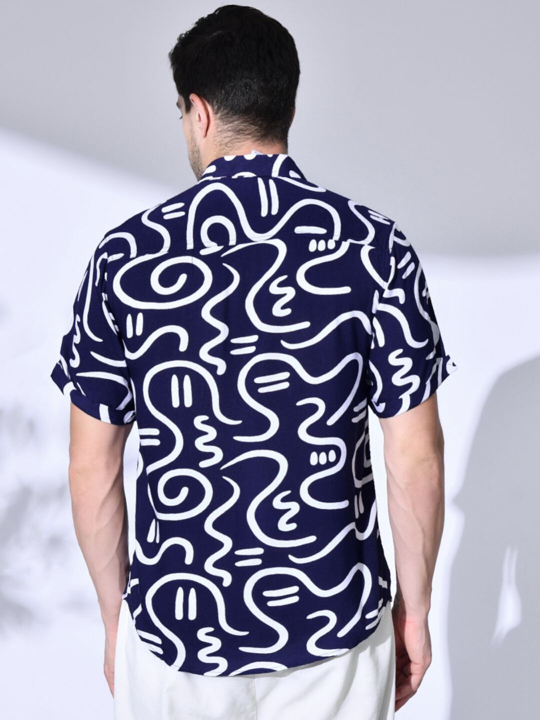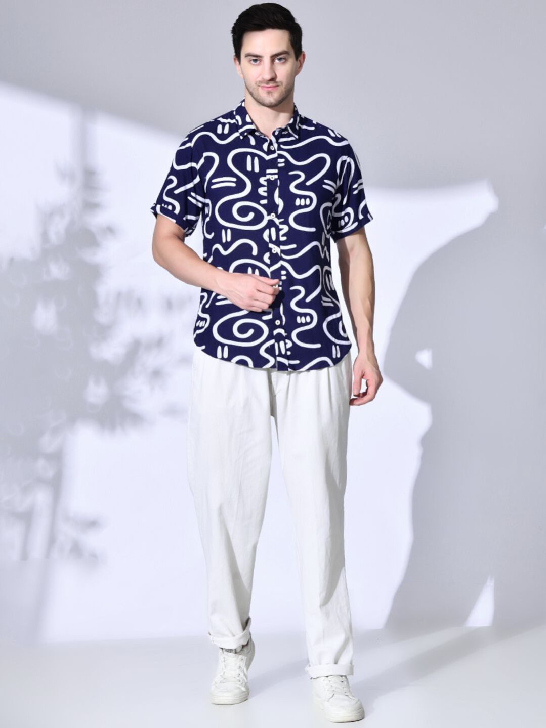 Blue & White Abstract Printed Roll-Up Sleeves Shirt
