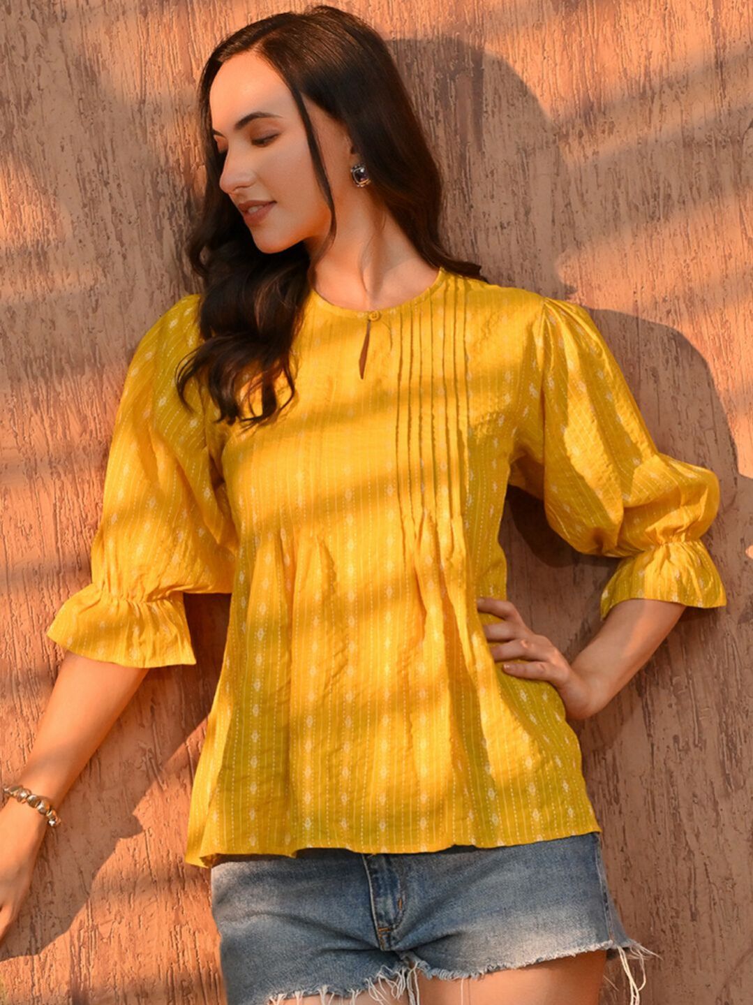 0 Review Of Product Cotton Kantha Printed Round Neck Top