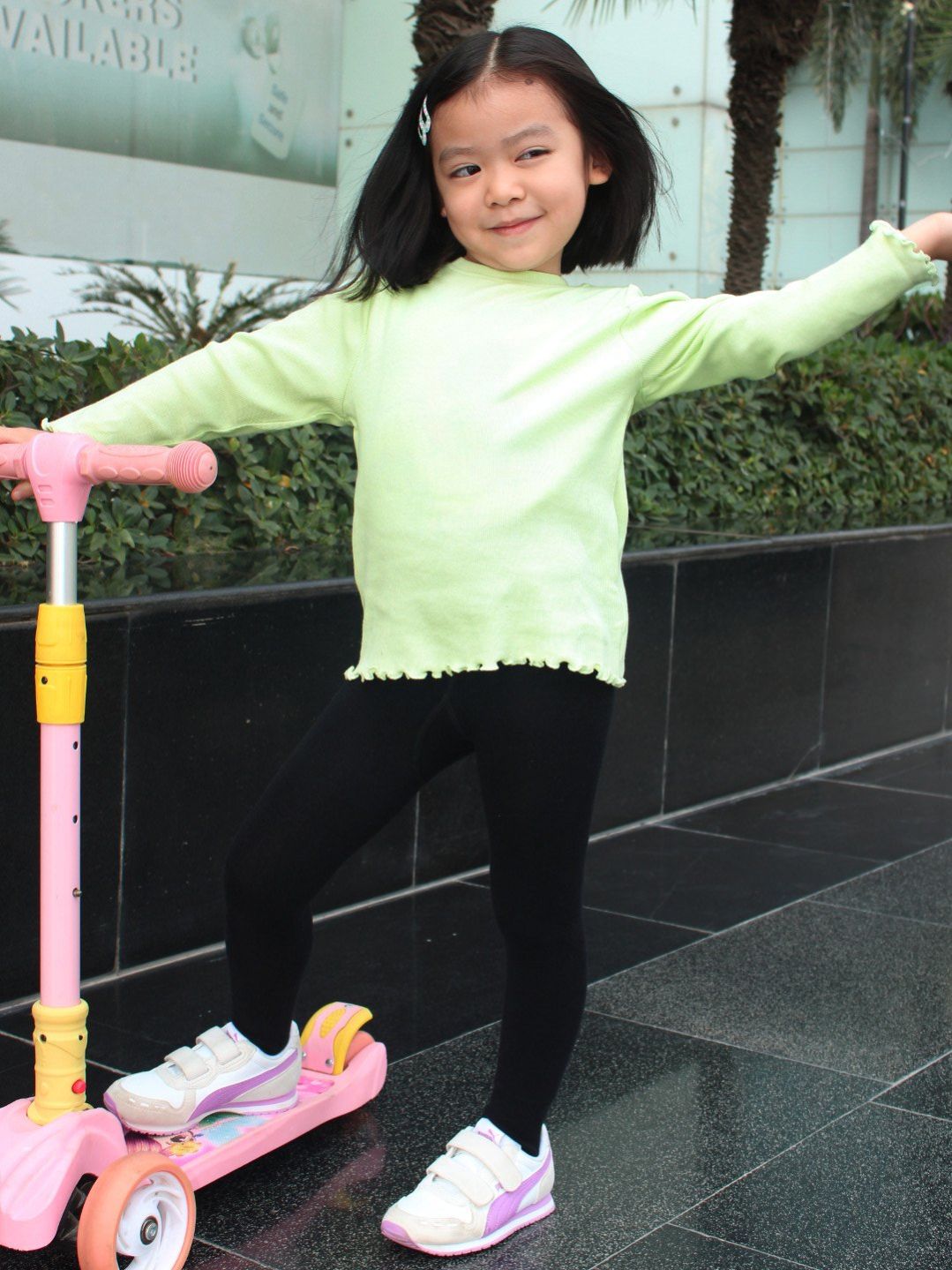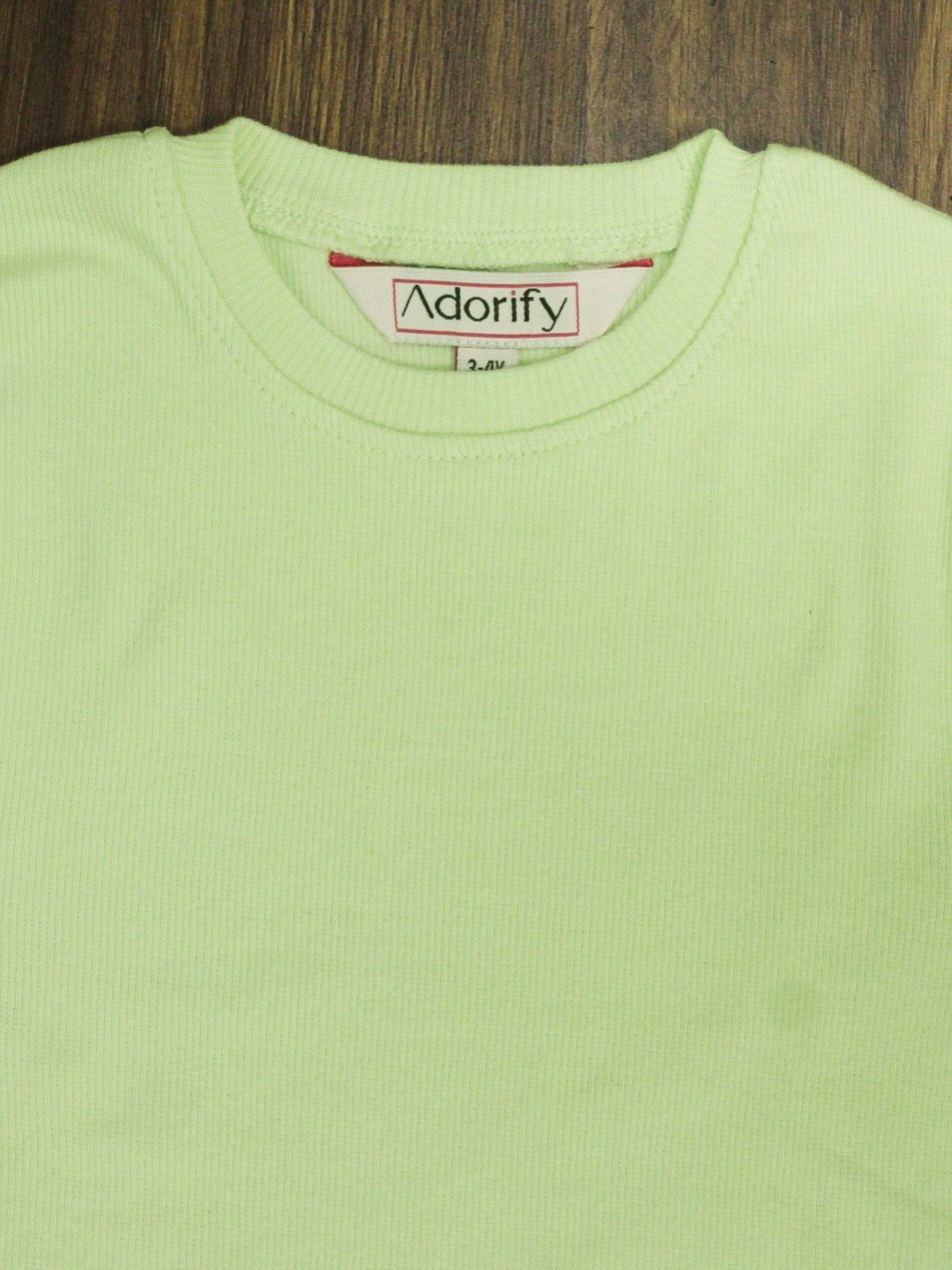 Tender Green Ribbed Round Neck Tee with Overlock detailed